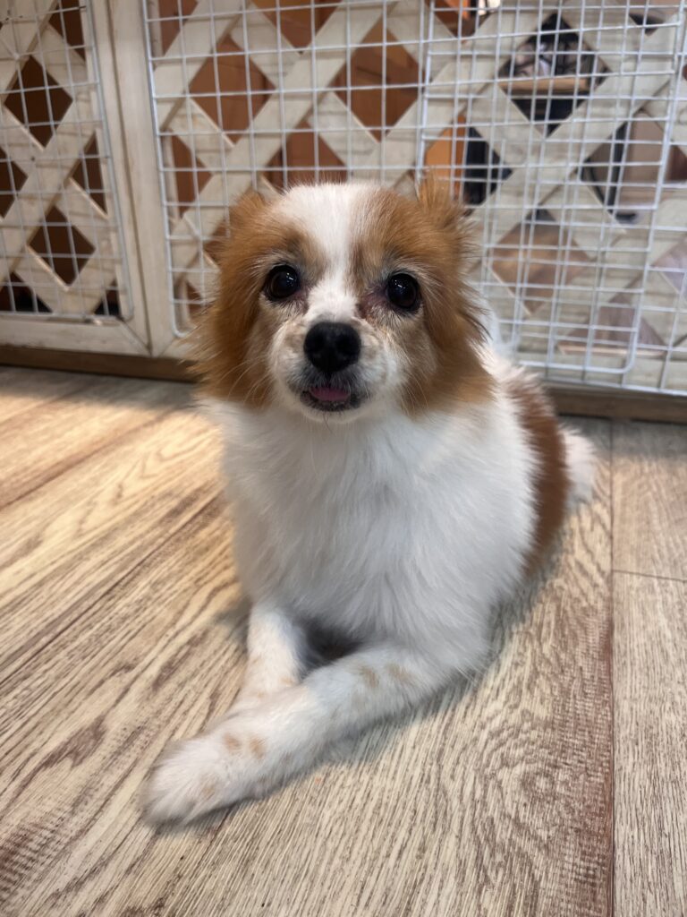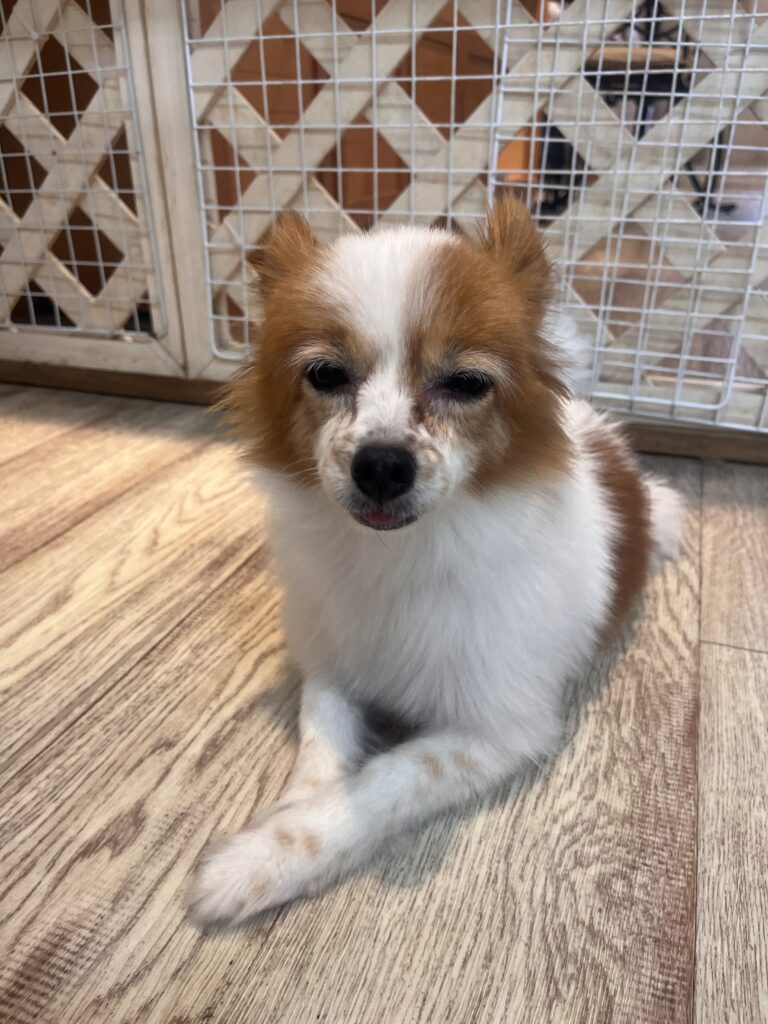 他のわんちゃんに追いかけられて怖がっていましたが1人で入れる場所を見つけて過ごしてくれていました★