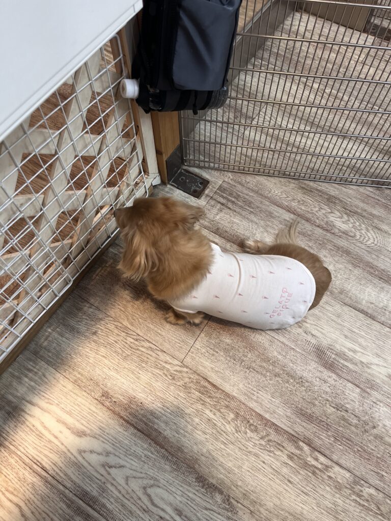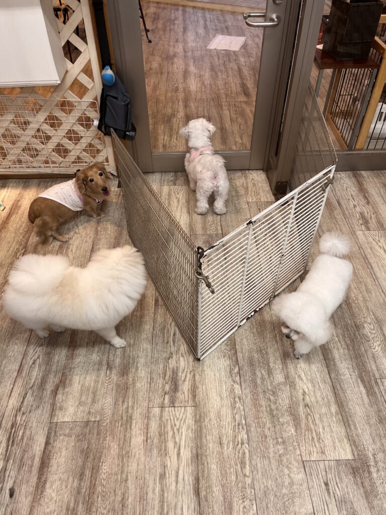 今日は白色軍団に囲まれてびっくりしたかな💦ずっと受付の下でお迎え待ち