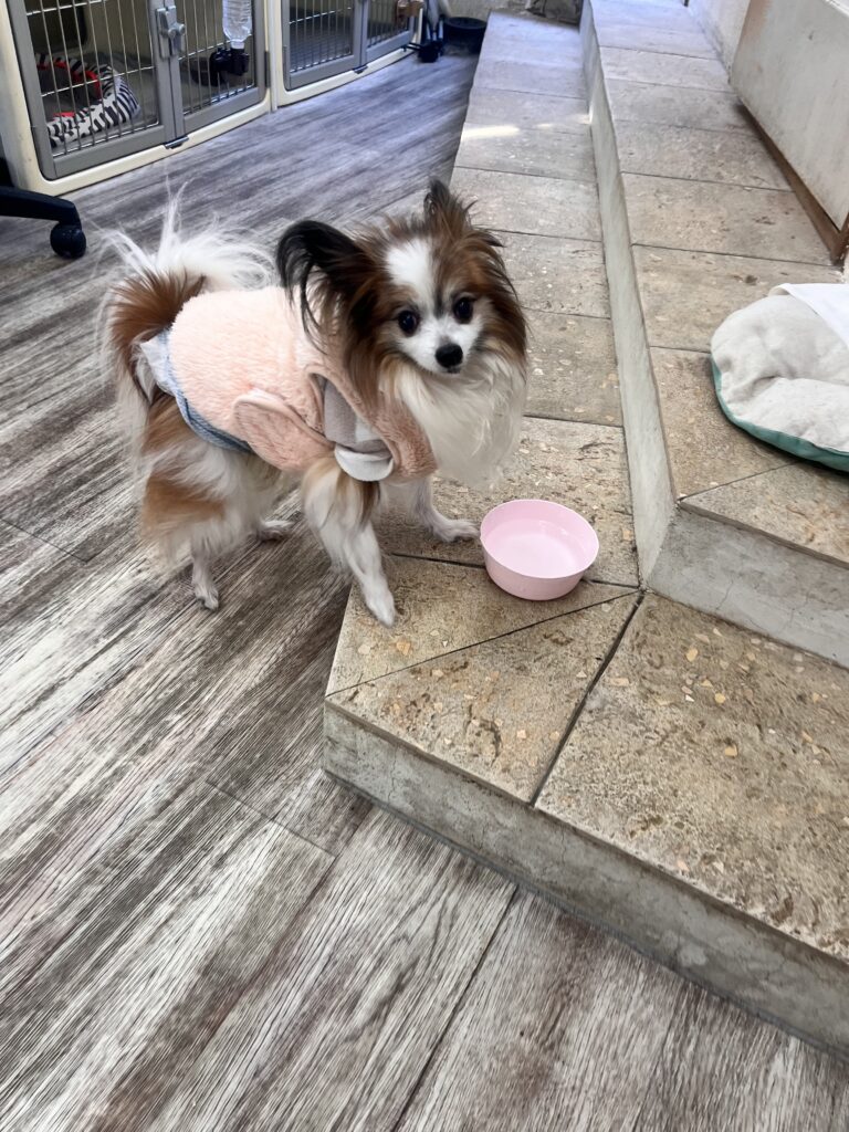 寒いので厚着をして来てくれました★お泊まり少し心配でしたがとっても楽しそうに歩き回ってくれていました!お友達にクンクンしてもいい?と聞いているような場面があったり、とっても可愛かったです🥰ご飯もしっかり食べてくれていて安心😌