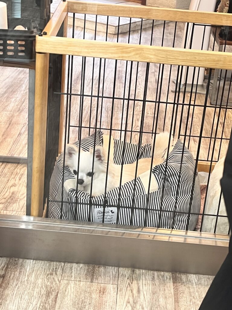ガラス越しにずーーーっと他のわんちゃんを観察!見つめているお目目とっても可愛い✨
