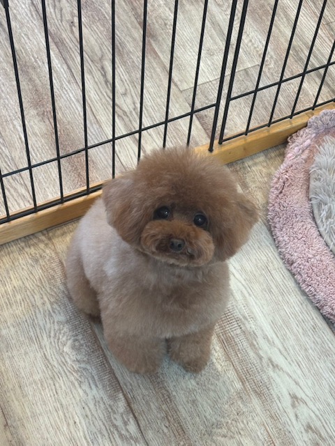 ジロウくん、おはよう~と元気にご来店、シートでちゃんとオシッコしてエライ!!