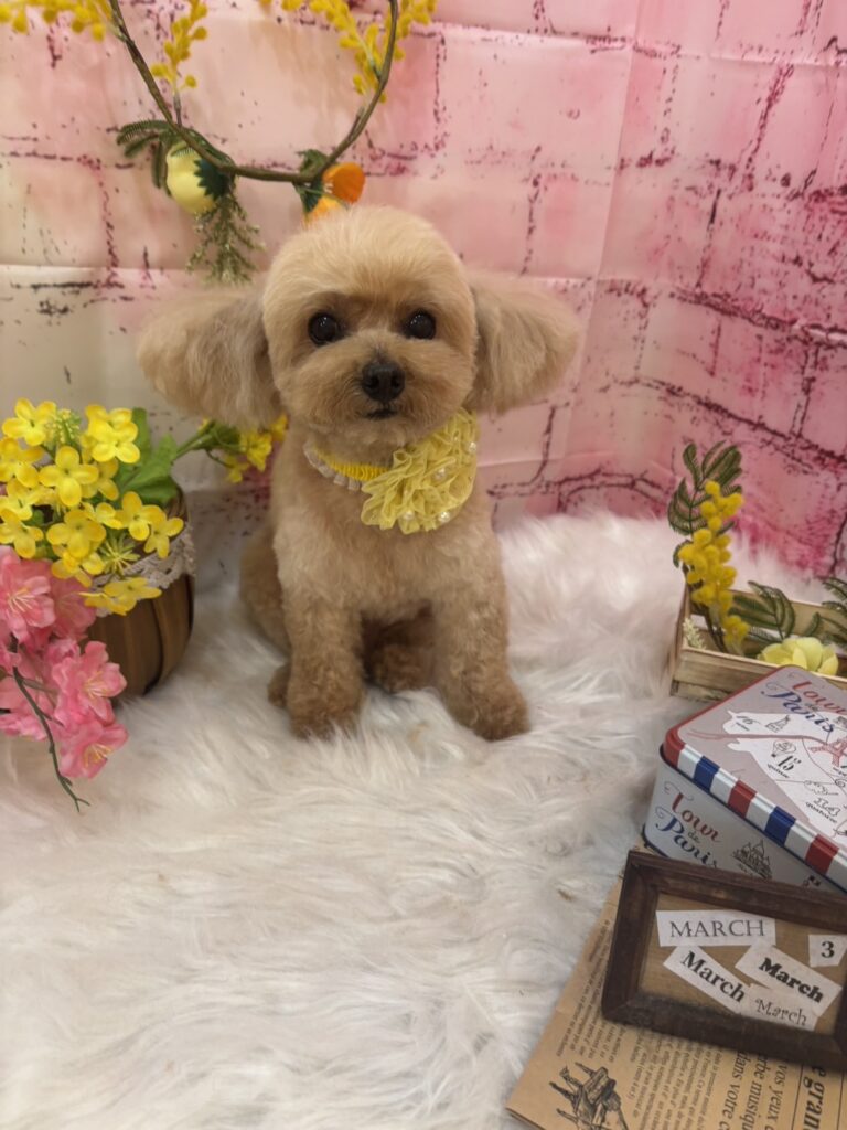 モンくん、とってもオットリさん♡黄色がよく似合うね(^_-)-☆