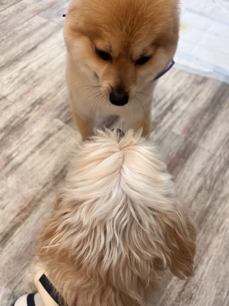他のわんちゃんにお尻をツンツンされてちょっと怒っていました!!!