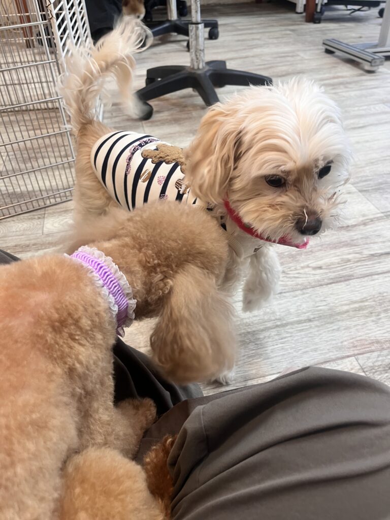 ちょっと他のわんちゃんに驚きながらも、スタッフにベッタリ♡